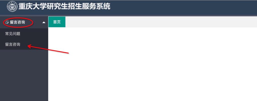 考生可通过电脑PC端登录我校“研究生招生服务系统”(网址://syk.aocainet.com)或手机关注我校研招办微信公众号,在“报考重大”菜单内进入“留言咨询系统”。详细操作如下图所示: