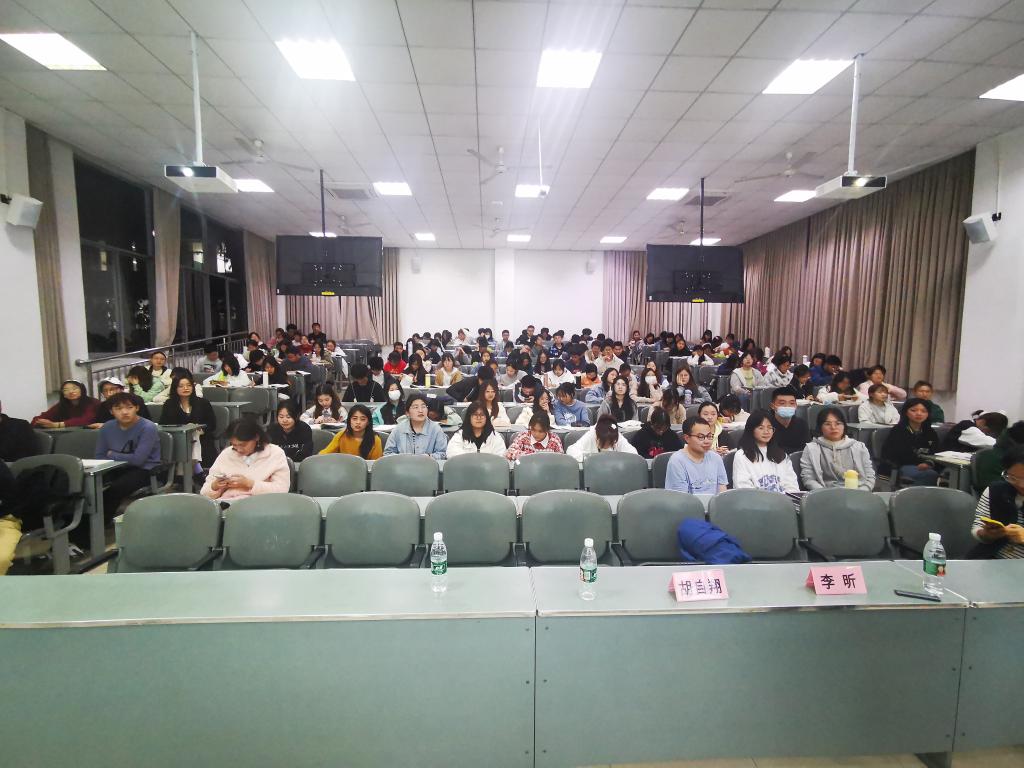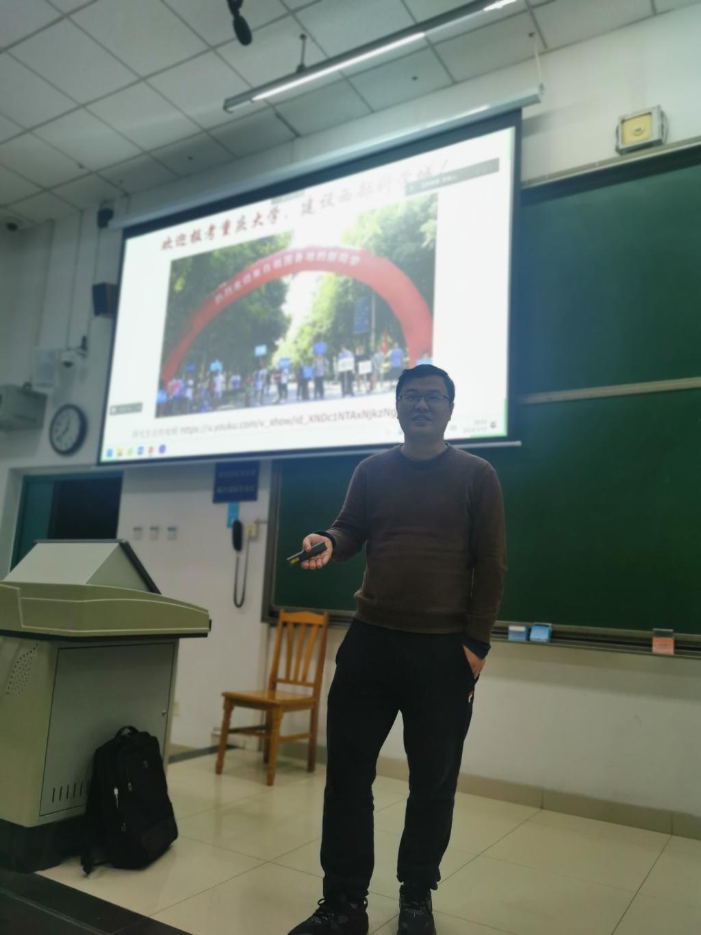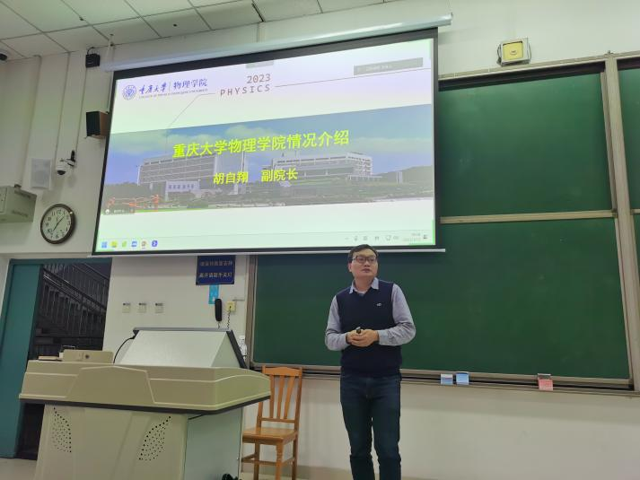 会议由汪闱副书记主持,汪闱副书记对远道而来的胡自翔副院长、李昕研究员表示热烈欢迎;然后,胡自翔副院长从宏观经济形势、地区政策优势、学院发展态势、校园生活环境等方面对我院物理学科做了整体介绍;李昕研究员对我院强耦合体系微观物理重庆市重点实验室做了全面细致地介绍。最后的答疑环节中,学生就推免生复试、奖学金、宿舍环境等问题踊跃提问,老师们一一解答并鼓励各位同学积极备考。