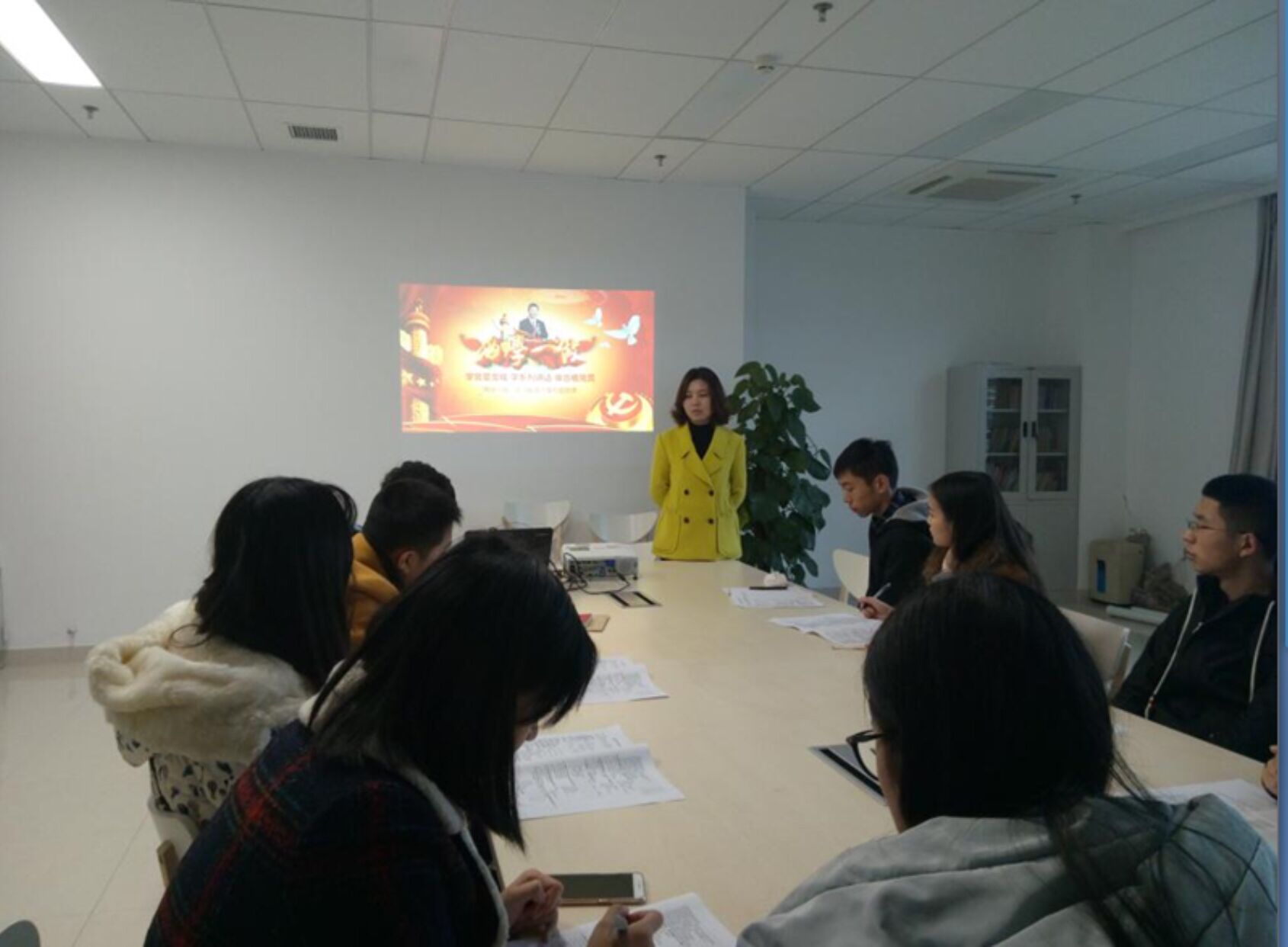 本科第一党支部在理科楼LE601会议室组织部分党员和所有入党积极分子开展本支部第二轮“两学一做”学习教育。支部书记林玮老师到场主持学习。