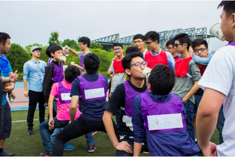 接下来进行拔河比赛,每个人都十分卖力,紧抓着拔河绳边吼边向后拉,在这骄阳似火的夏季,队员们仍然拼尽了全力,汗水肆意地流过他们的脸颊,但他们心中只有一个念头,就是:我一定要拉过河界!一如他们奋斗的大学四年时光和他们顽强拼搏的青春岁月。