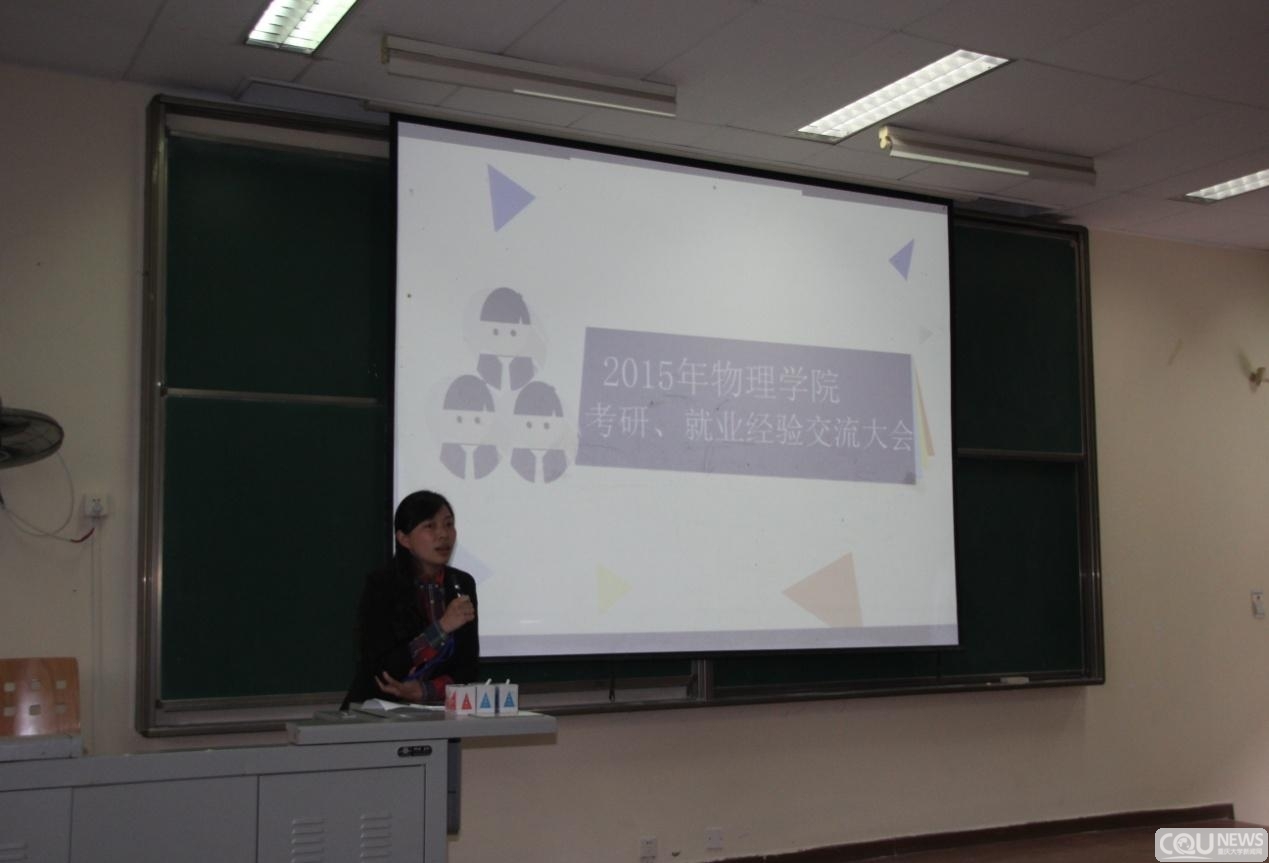 在虎溪校区D1133室迎来了2015年考研、就业交流大会。本次交流会由杨媛媛老师主持,旨在帮助2012级同学卸下思想包袱、拨开选择迷障、更好的认清自我、践行奋斗目标。出席经验交流大会的有学院学办全体老师及11名参加交流的2015届优秀毕业生。