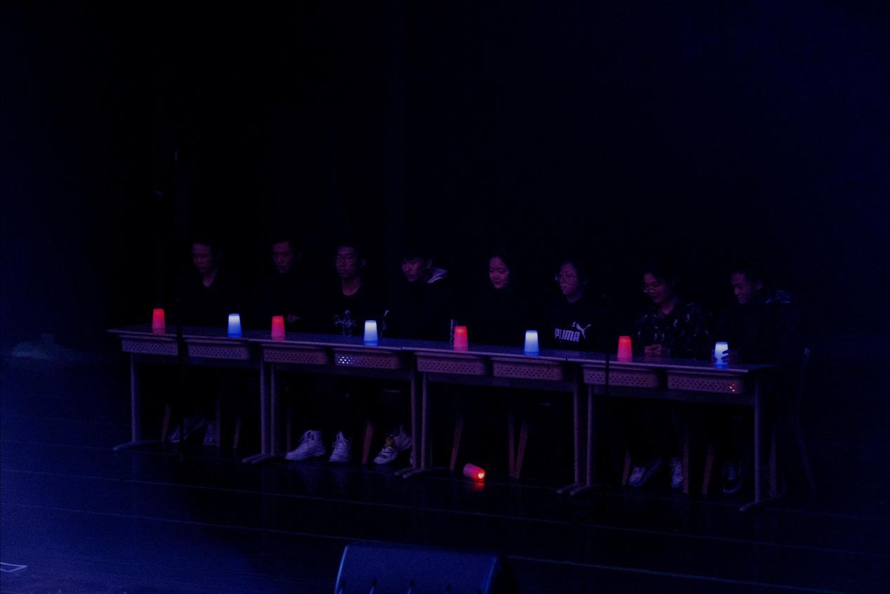 接着,由新闻部、办公室和组织部的同学带来炫酷的杯子舞。杯子敲击桌面,打出轻快整齐的节奏,荧光的杯子在黑暗中快速变换,拉出一道道曲线,伴随着悠扬的歌声,一场视听盛宴就此呈现。