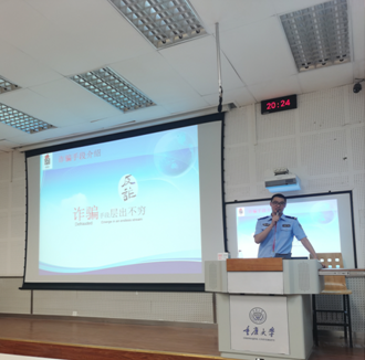 全体学生作防诈骗专题讲座。2021年6月6日晚,“全民共反诈,钟sir捎个话”系列讲座-新型网络诈骗及有效防范在虎溪校区D1237顺利举行,出席此次讲座的有澳彩网