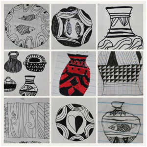 图3 孩子们在传统色彩课堂上创作的“彩陶画”