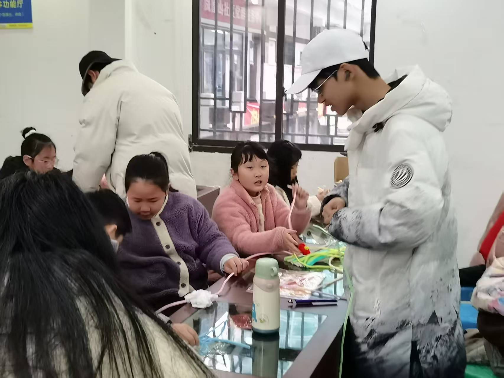 大家在实践团成员指导下,用丝线编织出一个个寓意吉祥的中国结,将五彩扭扭棒变成可爱动物和自由创意,挥舞手中的糖画笔绘制栩栩如生的图案,操控拓印体验年画技艺,一盏盏花灯在小朋友们手中逐渐成型,为节日增添浪漫氛围......孩子们玩得不亦乐乎。