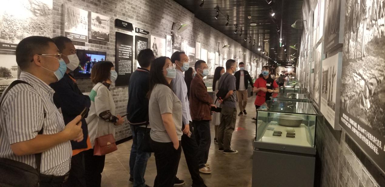 重庆建川博物馆是重庆抗战兵工厂旧址公园的重要主城部分,包含兵工生产防空洞53个,前身为解放前国民政府兵工属第一兵工厂。建川博物馆利用了其中24个防空洞,打造并设立了兵工属第一工厂的厂史物博物馆、抗战文物博物馆、票证生活博物馆、重庆饮食回忆博物馆等8个博物馆。活动中,大家认真聆听讲解,仔细端详每一件展品、每一件文物,进一步重温重庆建设兵工厂的历史、发展历程和革命前辈的崇高革命精神和不朽的贡献,感受红色革命情怀。在重庆建川博物馆,随处可见重庆元素。尤其是在重庆故事博物馆,老重庆的一些街市场景、招牌老店,都通过情景再现的方式重现。
