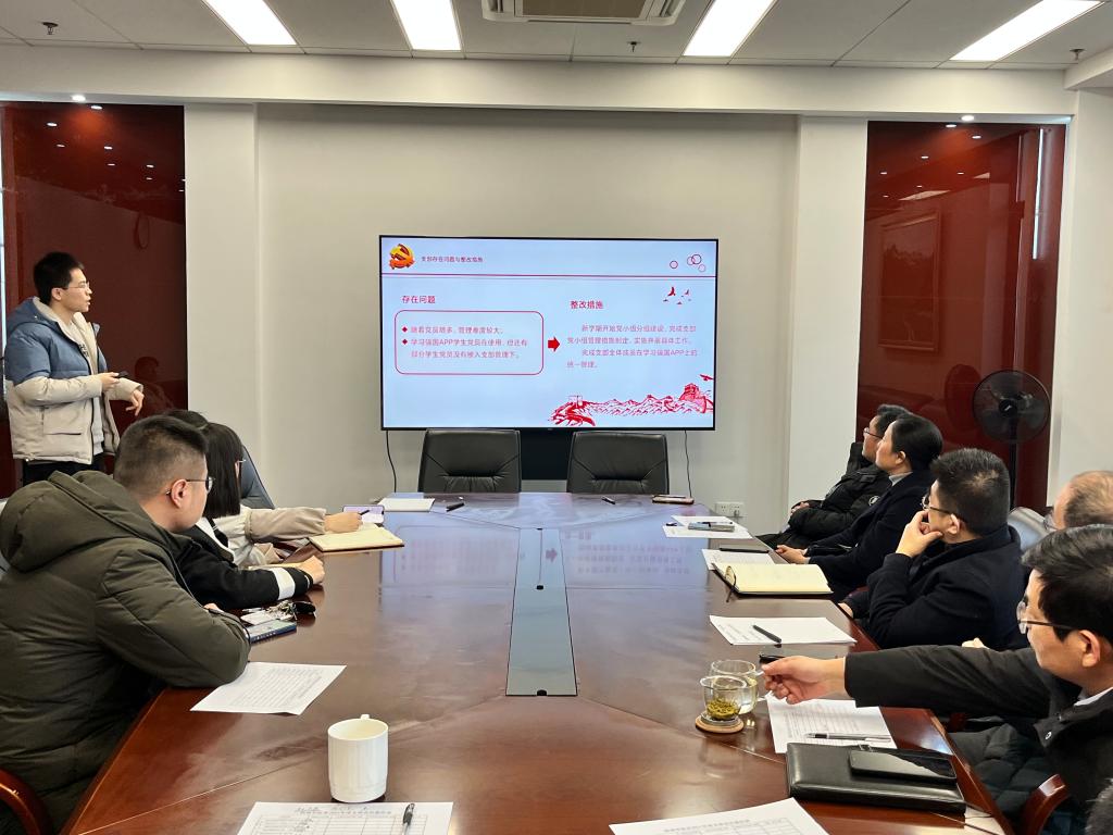 会上,各党支部书记通过PPT详细汇报了过去一年党支部的工作整体情况、党史学习教育完成情况、主要亮点工作和存在的问题以及下一步整改思路。以“我为师生办实事”落实情况和深入学习贯彻习近平新时代中国特色社会主义思想、学习贯彻党的十九大和十九届六中全会精神、巩固深化主题教育成果等为主要切入点,汇报如何切实增强“四个意识”、坚定“四个自信”、做到“两个维护”、落实“三会一课”等、严肃党内政治生活等情况。同时,深入查摆了当前存在的问题并提出了改进措施。