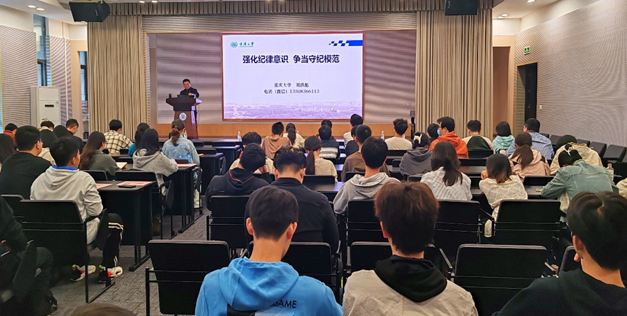 马克思主义学院的刘洪彪教授,主题为“强化纪律意识 争当守纪模范”。刘老师以丰富的事例和生动的讲述,分三个层次向同学们阐释了什么是党的纪律,为什么要进行党的纪律建设以及作为党员怎么进行自我约束。