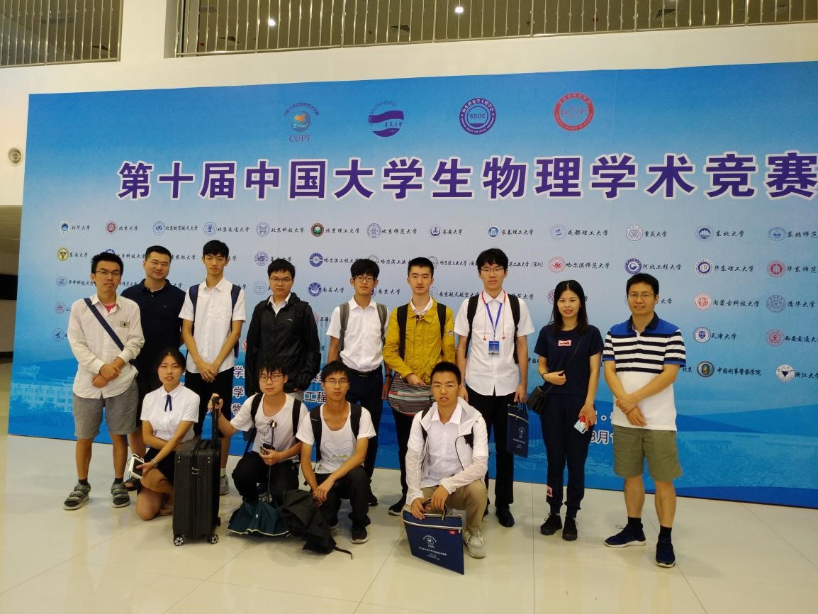吴小志副院长带领下,于2019年8月11日—16日参加了由中国大学生物理学术竞赛组织委员会主办、青岛大学和山东省光学工程学会承办的第十届中国大学生物理学术竞赛。经过同华北、华东、西南、西北、东北、中南6个地区赛胜出的64所高校派出的65支代表队进行5轮15个阶段的激烈角逐,最终获得了国赛二等奖并获得2020年参加国赛的直通资格。其中,何剑锋同学同时获得最佳选手奖(国赛仅3个名额)和最佳反方奖(国赛仅3个名额)两项单项奖,南京大学祝世宁院士亲自为何剑锋同学颁奖。