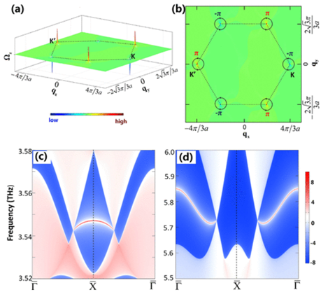 该工作中,研究人员采用基于密度泛函理论的晶格动力学计算,根据二阶力常数矩阵构造类似于电子系统的Wannier紧束缚Hamiltonian,从而可以获得声子系统的Berry Phase和拓扑边缘态。在此基础上,研究人员结合高通量计算,发现具有量子谷Berry Phase的Dirac声子态在二维六角晶格材料中普适存在。研究结果对进一步研究拓扑声子态以及其实际应用具有重要作用。