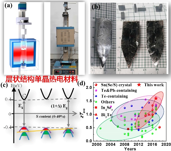 图二:宽温域高性能SnSe1-xSx单晶热电材料
