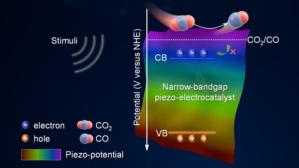 图示:窄带隙压电催化剂策略示意图