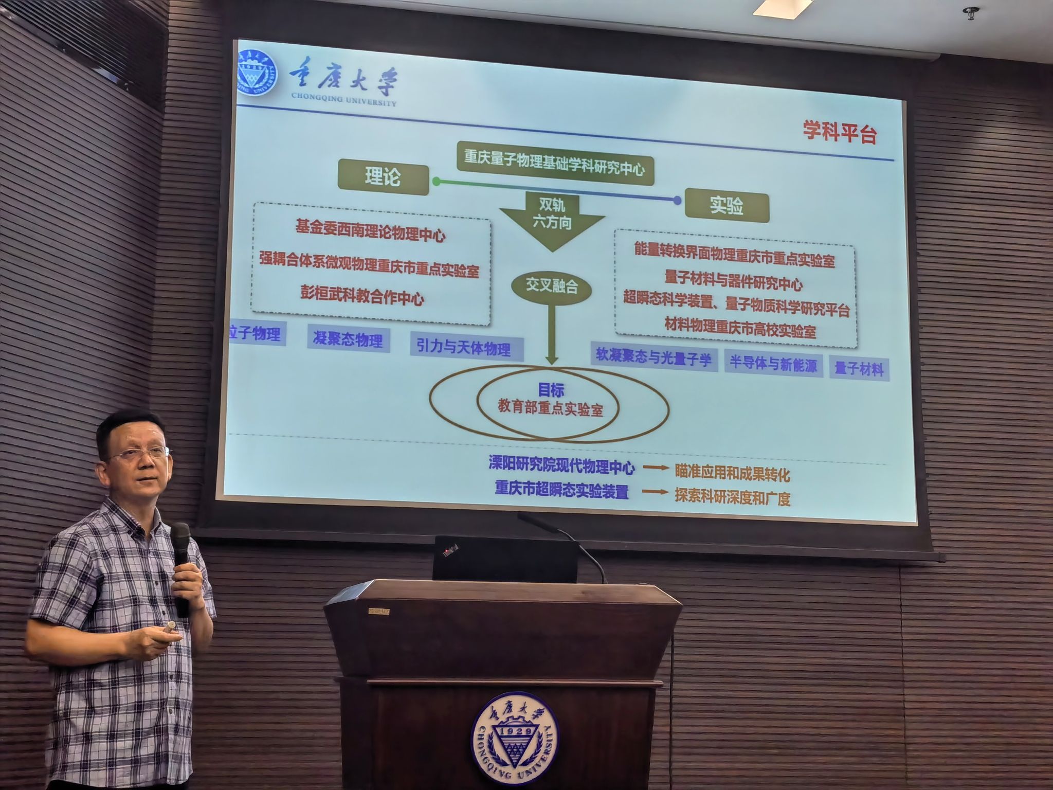 的院史院情与学科发展脉络等整体情况。他详细阐述了学院在高水平师资、学术氛围、学科平台所取得的飞跃式进展。接着,他细致讲解了学院专业特色研究方向,包括了粒子物理理论、引力和宇宙学、强关联量子系统、计算凝聚态物理、新能源及智能材料、光电材料与器件、超导材料及物理、软凝聚态物理生物物理8个方向。最后,吴兴刚寄语新生要树立自己的志向,担当起强国建设、民族复兴的使命,实现共同的梦想。