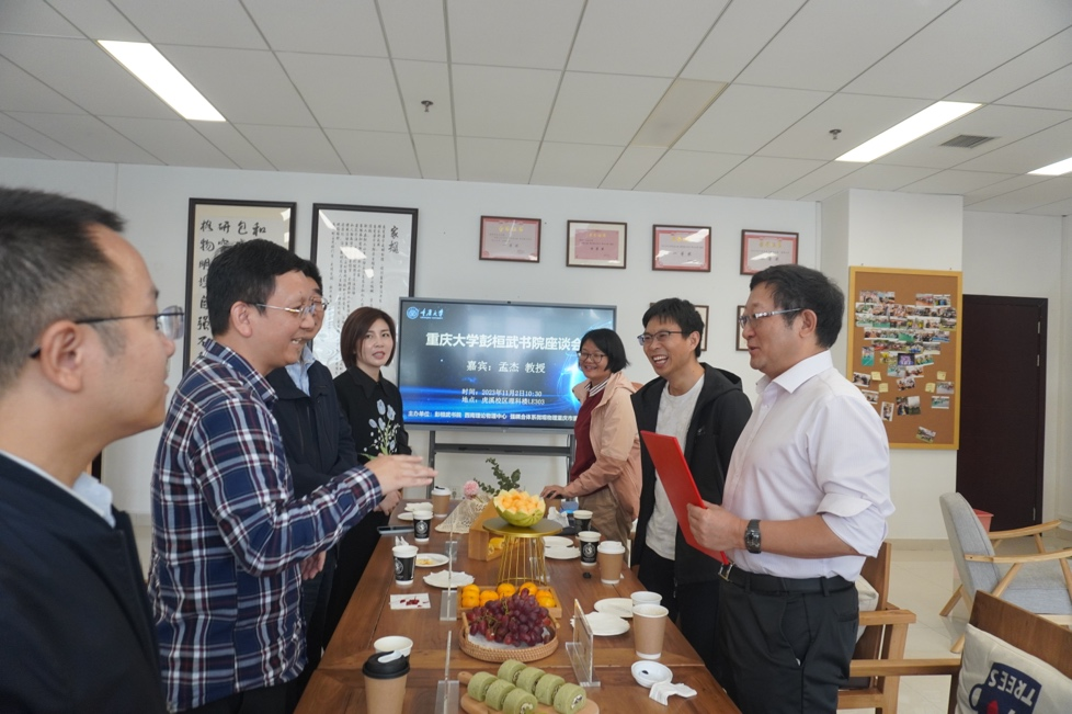 党委书记韩忠、院长吴兴刚、副院长胡自翔、副院长王锐、部分教学团队负责人以及青年教师代表参加了座谈会。与会老师与孟杰教授针对教育教学改革、人才培养、课程建设等方面进行了深入交流。吴兴刚院长代表学院对孟杰教授来校交流指导表示热烈欢迎,并为孟杰教授颁发了西南理论物理中心战略咨询委员会委员的聘书。
