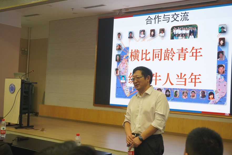 黄金为什么比铁贵?人为什么是宇宙中的一粒尘埃?孟老师通过两个有趣的问题引发大家思考,进而从元素起源和宇宙年龄等方面讲述了原子核物理的特殊地位和独特魅力。孟老师用幽默风趣的语言简单介绍了几个影响深远的物理学学派。通过一张“以发现国家国旗为填充”的特殊元素周期表,孟老师介绍了原子核物理研究需要的大科学装置和国际竞争。孟老师用团队事迹现身说法,鼓励同学们“横比同龄青年,纵比牛人当年”,敢想、敢说、敢做、敢闯、敢革命,在现代物理学领域里,闯出自己的一条路子来。
