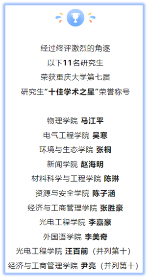 第七届研究生“十佳学术之星”获奖名单