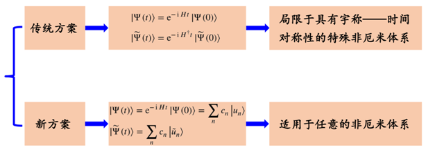 量子力学是现代理论物理的研究基石。传统教科书中主要介绍了厄米体系的量子力学,即矩阵本征值为实数的量子体系。近年来非厄米量子体系吸引了人们的极大关注,其原因是非厄米矩阵的本征值可能是复数,本征值数域的扩大为量子力学的研究带来了新的挑战和新的机遇。在量子力学中,态随时间演化的非平衡过程是一个非常重要的研究课题,其中一个重要的物理量是洛施密特回波(Loschmidt echo)。洛施密特回波刻画了初态与时间演化态之间的交叠程度,在非厄米体系中其被推广为双正交洛施密特回波。然而传统的研究方案局限于具有宇称——时间对称性的体系,这类特殊的非厄米体系具有实数谱。因此迄今为止,人们还缺乏有效的手段来研究具有复数谱的任意非厄米体系的双正交洛施密特回波。