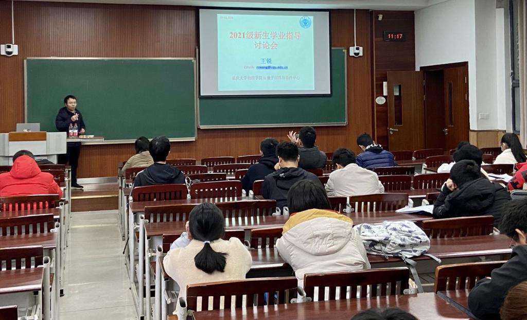 随后,王锐教授对拓扑物态这一新奇物理效应进行了生动讲解。此外,王锐教授结合自身求学、科研及任教经历,就学业选择及大学生活的话题,与同学们进行了热烈讨论,为同学们解答疑虑,为同学们提供参考意见,取得了同学们的一致好评。