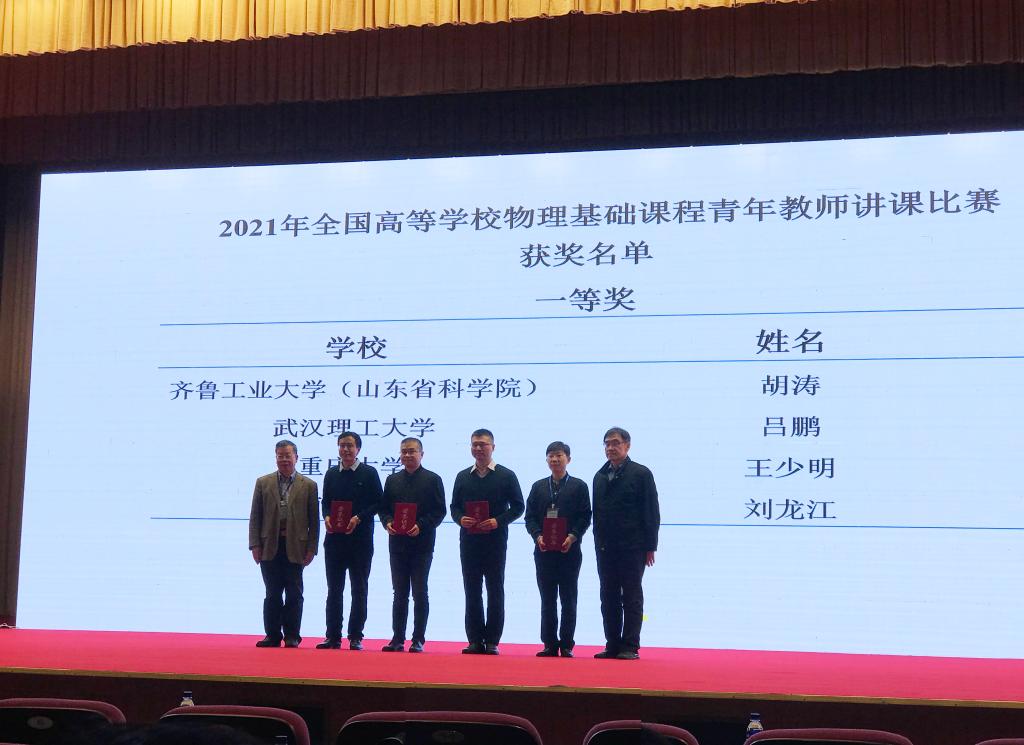 20211015日至17日,第六届高等教育杯全国高等学校物理基础课程青年教师讲课比赛决赛在鲁东大学举行。我校澳彩网 的王少明老师代表西南地区高校参赛,最终荣获一等奖,这是重庆市首次获得该项比赛的一等奖。