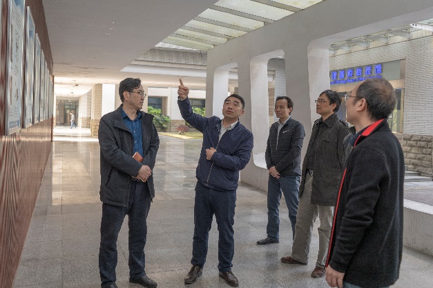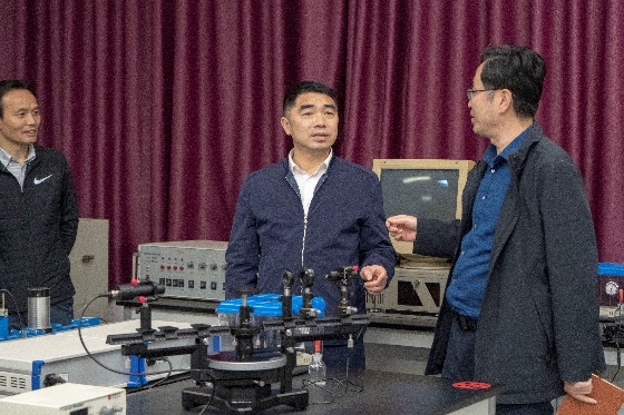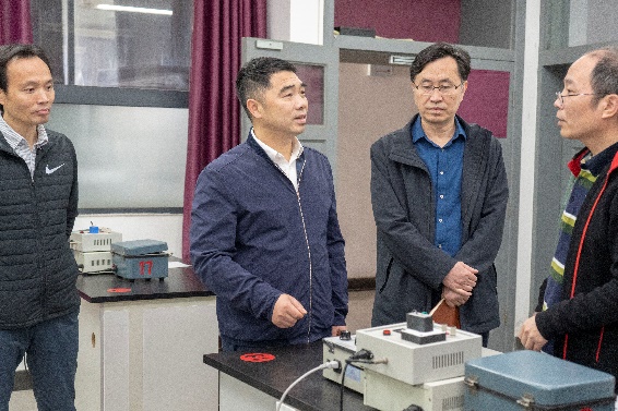 物理实验教学中心调研。陪同调研的有实设处张云怀处长和吴小志副院长。