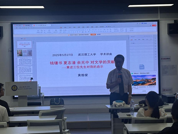 讲座开始前,叶琼琼教授介绍了黄维樑先生的生平经历及学术影响,用“学贯中西”“著述等身”“学术长青”三个关键词来形容黄先生。随后,黄先生幽默生动的开场白激起了听众极大的兴趣。报告中,黄维樑先生回顾了他与钱锺书、夏志清、余光中三位著名学者的交往故事,尤其详细介绍他与余光中长达60年的书信来往史,真实地再现了三位大学者的精神风貌。黄先生还展示了书信、报纸等珍贵的史料,介绍了香港名山风景的峥嵘。最后,黄先生介绍了三位重要学者的学术思想、生平经历与生活趣事,畅谈自己对于文学的独到思想与深刻思考。精彩纷呈的内容使大家浑然不觉时间飞逝,报道最后,黄先生为同学们寄予厚望,留下“博学之、审问之、慎思之、明辨之、笃行之”的寄语。