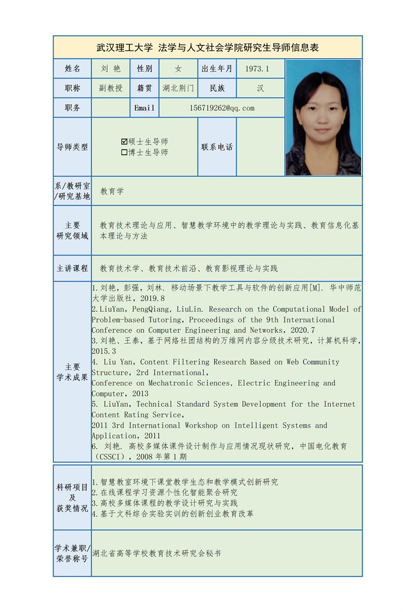 刘艳 副教授简介