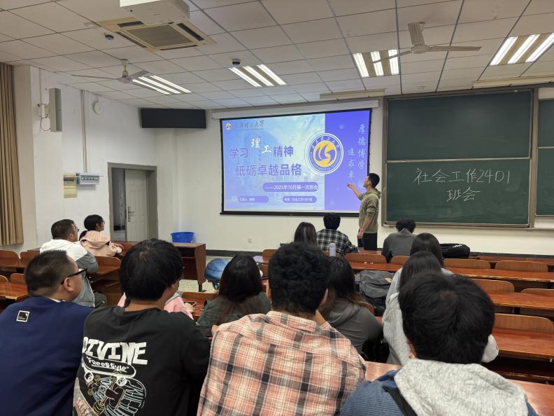 班会步入尾声,班长杨樟同学总结强调,理工精神从不是陈列的标语,而是流淌在武理人血脉中的精神力量,是同学们成长路上的 “指南针”与“动力源”。未来,社会工作2401班全体同学也会继续深植理工精神,以“厚德载物”涵养品格,以“追求卓越”驱动成长,使理工精神成为自身每一次前行的底气与方向。