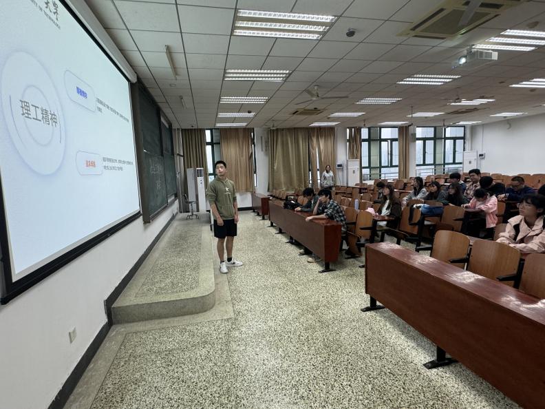 随后,杨樟同学梳理了理工精神的形成脉络与价值内涵。这一精神并非凭空产生,而是植根于学校数十年办学的历史积淀,在一次次科研突破、教学革新的办学实践中,融合了初心与坚守,成为历代武理人共同的精神印记。“厚德载物”是理工精神的立身之基:于个人,是涵养谦逊包容的品格、坚守责任担当的底线;于校魂,是立德树人、回馈时代根本任务的具象化。“追求卓越”则是理工精神的奋进之向:它不是对完美的苛求,而是对“守成”的超越和对 “权威”的质疑,是对“不满足于合格,更致力于优秀”信念的深度践行,激励着师生不断突破自我。