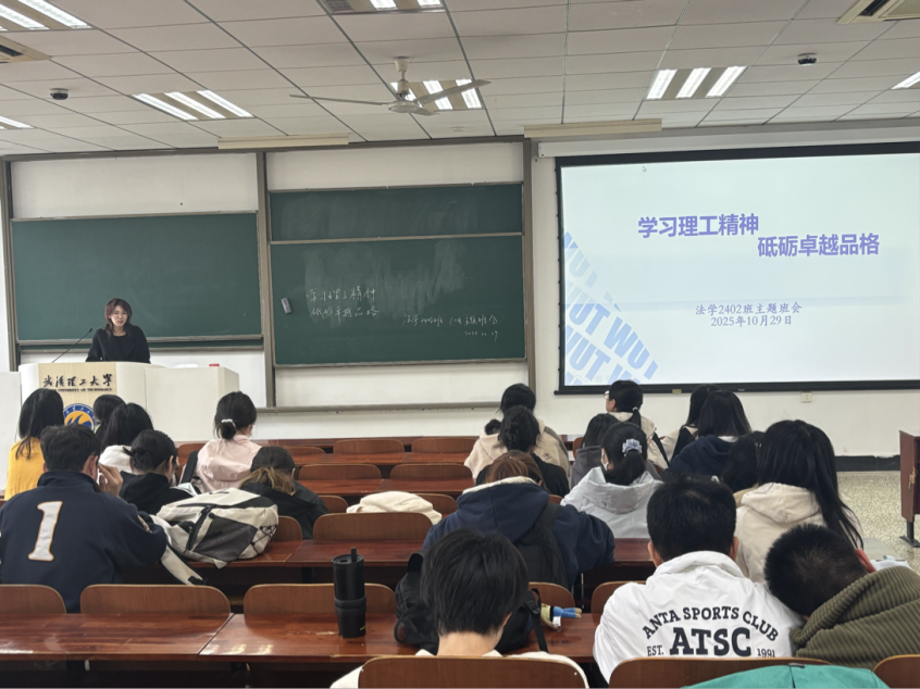 为弘扬理工精神,践行澳彩网 “厚德博学,追求卓越”的校训,10月29日,法学2402班在南湖校区博学主楼308教室举办了“学会理工精神,砥砺卓越品格”主题班会,会议由班长孙畅主持。