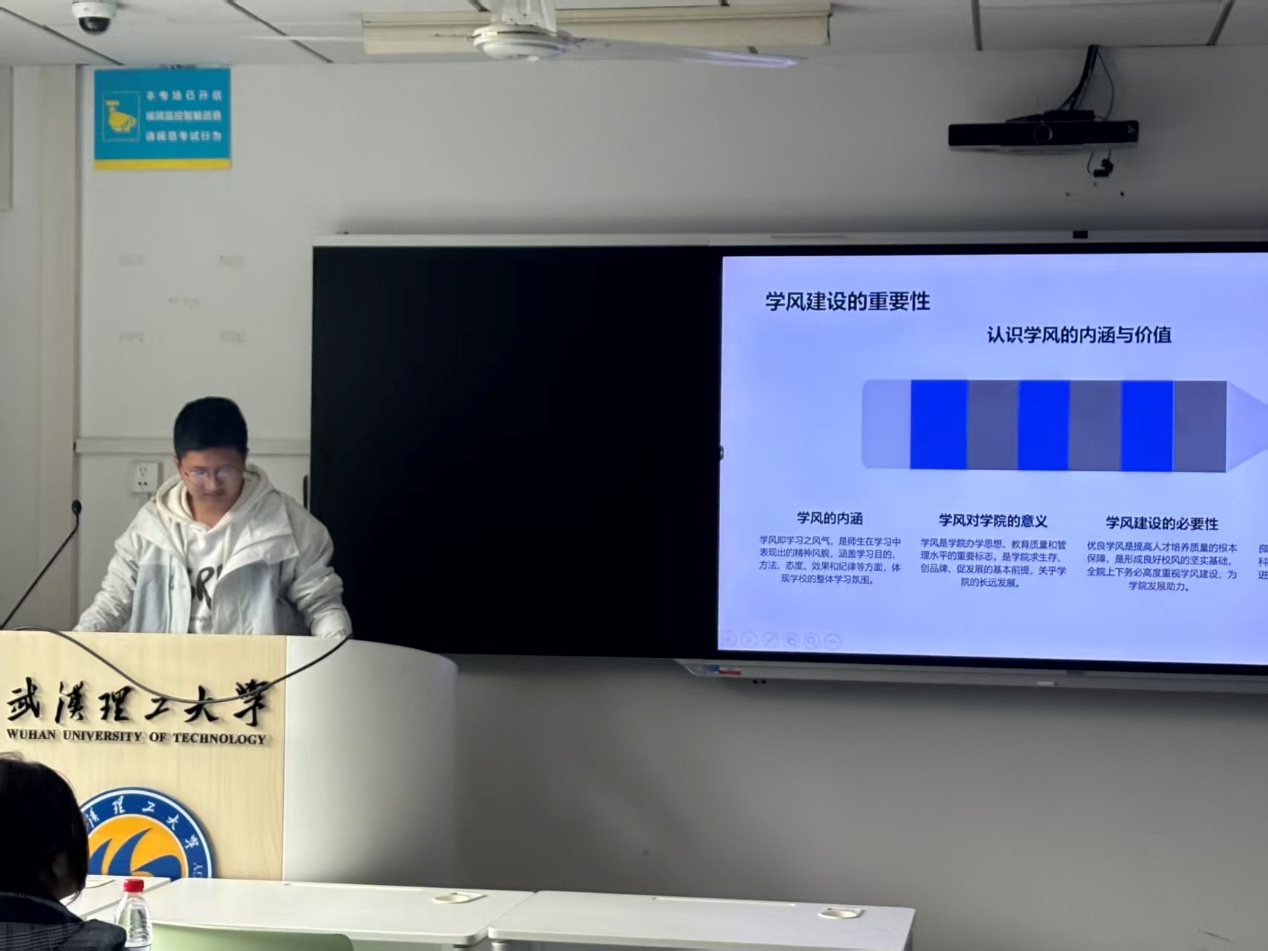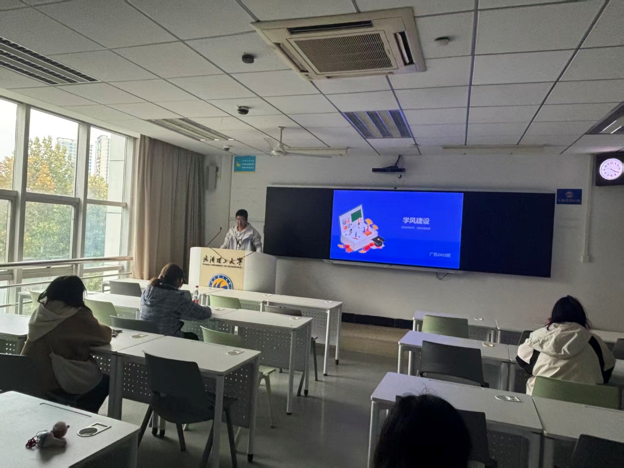 为进一步增进学生对学风建设的认识,激发学生积极建设良好学风的热情,2025年10月25日,广告类2402班在博学北楼308教室开展了“学风建设”主题班会,活动由班长张恺骏主持。