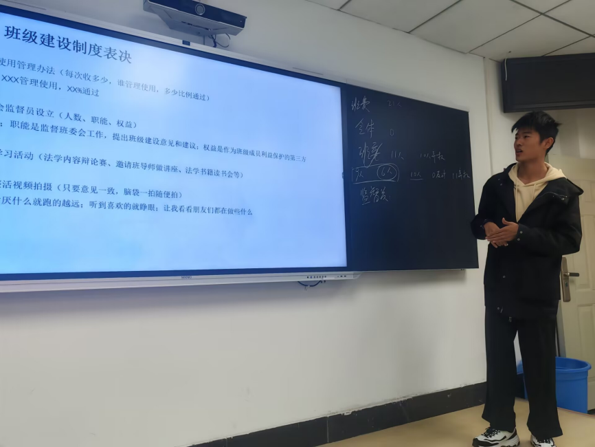 随后,班会以民主投票的方式,对三项关键班级事务进行表决:是否设立班委会监督员以强化班级工作监督、是否定期开展班级学习交流活动以提升学业水平、是否拍摄班级创意视频以丰富班级文化建设。三项提案均获得多数同学支持并顺利通过,充分体现了同学们参与班级建设的主人翁意识和民主决策理念,进一步凝聚了班级向心力。