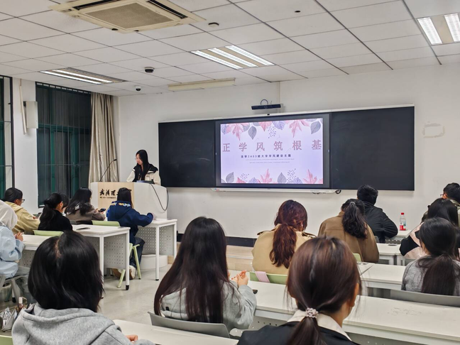 班会伊始,刘易惠首先点明了本次会议的两大核心议题。她开宗明义地指出,优良的学风是个人成才的基石,而清醒的网络安全意识则是当代大学生平安成长的重要保障,二者共同构成了和谐稳定、积极向上的班级环境不可或缺的组成部分。