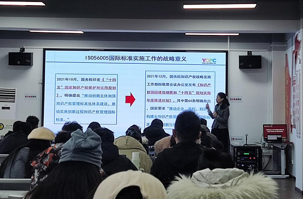 随后,田巧丽工程师讲解了ISO56005创新与知识产权管理的相关经验。她指出,《创新管理-知识产权管理工具和方法-指南》ISO56005是由我国提出并主导制定的首个知识产权管理国际标准,2020年正式发布,长飞光纤光缆股份有限公司是ISO56005国际标准首批中国试点单位。