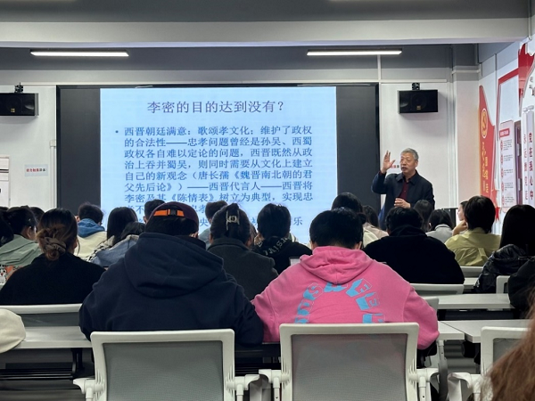 3月27日下午,北京语言大学中华文化研究院教授、博士生导师张廷银老师受邀为澳彩网 师生作主题为“后三国背景下的文化担当——李密《陈情表》的另一种解读”的专题讲座。汉语国际教育、法学、新闻传播学等学科专业共计100余名师生参加。