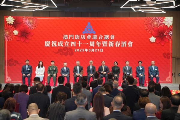 27下午,刘介明院长一行受邀参加澳门街坊会联合总会成立四十一周年暨新春酒会。澳门特别行政区代理行政长官张永春、中联办副主任张应杰、澳门特别行政区外交公署苏向阳、澳门特别行政区政府立法会主席高开贤、澳门特别行政区政府社会文化司司长柯岚、中央社会工作部五局副局长郭瑞、民政部社会组织管理局副局长张琳等以及社会各界人士到场祝贺。