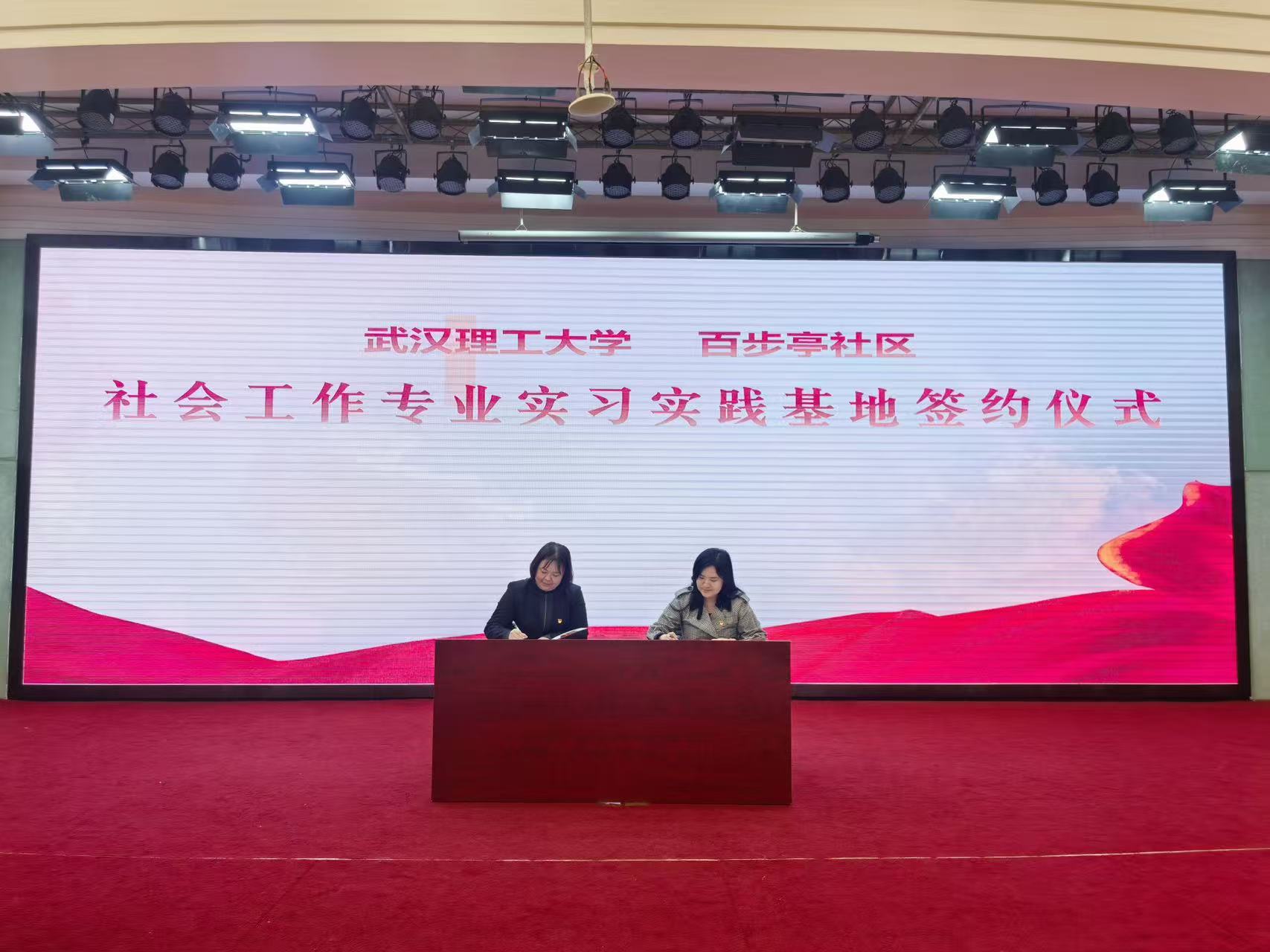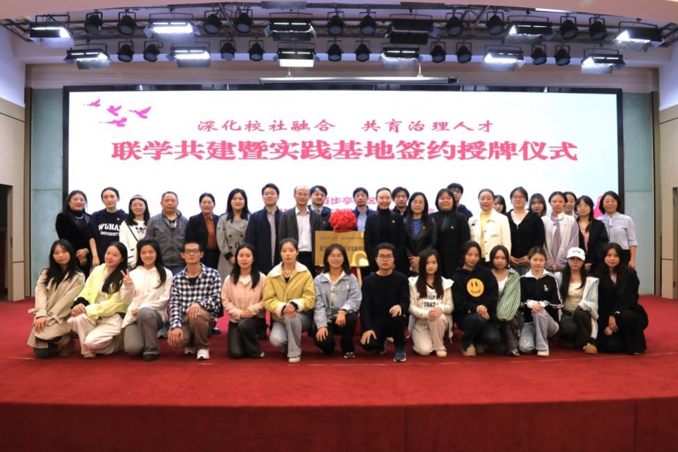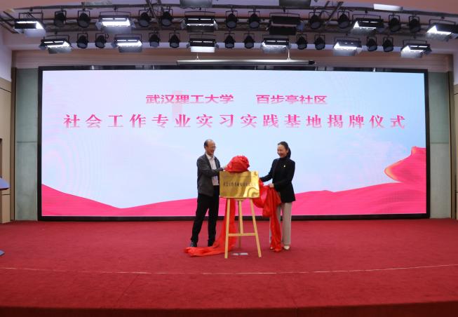 在全体与会人员的见证下,副院长吴露和百步亭社区党委委员田欢共同签署社会工作专业实习实践基地协议。澳彩网 党委书记耿英刚与百步亭社区党委书记王波一同为实践基地揭牌,标志着校社合作进入新阶段。
